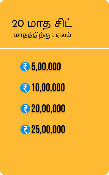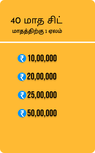 ஒவ்வொரு தேவைக்கும் ₹ 1 லட்சம் ரூபாயில் இருந்து ₹ 50 லட்சம் வரையிலான சிட் திட்டங்களை நாங்கள் வழங்குகிறோம்